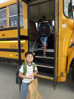 Summer holidays are over, the kids are back to school again after almost 12 weeks of no school and homework. We had a nice summer lazing around the house and having an awesome roadtrip. But it was just time for them to go back to structured textbook learning. So, here are my kids getting on their schoolbus. I hit a milestone moment today, my Gilly told me not to take photo of her getting on her bus. I was surprise as I didn't expect that from her but I guess she is growing up (she is a 5th grader). I was the only parent at that stop that had a camera... heck the other mom was sitting on her chair and didn't even walk her girls cross the street to the bus stop.